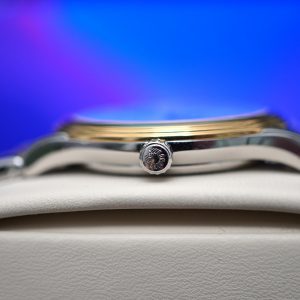 Kích thước đồng hồ là 38.5mm. Kích thước vừa vặn không quá to, không quá nhỏ. Kích thước này cũng phù hợp với nhiều loại cổ tay nam giới hiện nay.