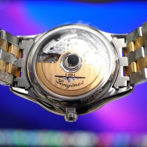 Mặt sau đồng hồ được thiết kế lộ máy với các chi tiết được làm rất tỉ mỉ và đẹp mắt. Logo Longnies cùng được khắc rất sắc sảo ở phía bên trong.