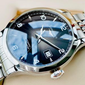 Longines Record L2.820.4.56.6 ( L28204566 ) có thiết kế khá đơn giản, Nền mặt màu đen khói đồng tâm cực đẹp.