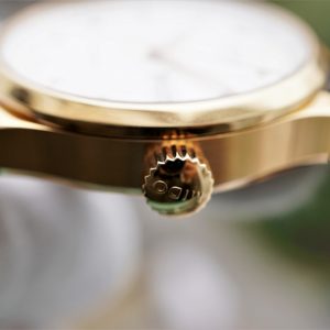 Phần núm chỉnh giờ cũng được in biểu tượng đầy tinh tế của thương hiệu này