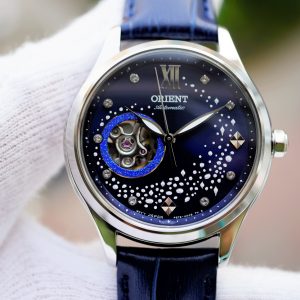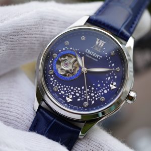 Thiết kế nữ tính, thanh lịch, mẫu đồng hồ cơ lộ máy này phù hợp để các quý cô thể hiện sức hấp dẫn của mình. Nền Dial xanh nổi bật trẻ trung với các viên đá lấp lánh bắt mắt.