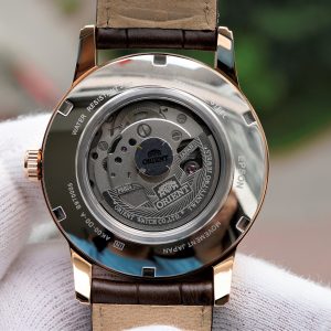Orient luôn chú trọng sử dụng các chất liệu bền bỉ cho cỗ máy của mình. Phần vỏ được làm từ thép không gỉ 316L mạ PVD vàng bền bỉ với thời gian.