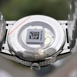 Toàn bộ tổng thể được bao phủ duy nhất bằng một gam màu kim loại sáng bóng. Giúp người đeo tăng phần nam tính mạnh mẽ. Phía sau đồng hồ được trang bị kính Sapphier trong suốt. Giúp người đeo dễ dàng quan sát các chuyển động của bộ máy cơ học.